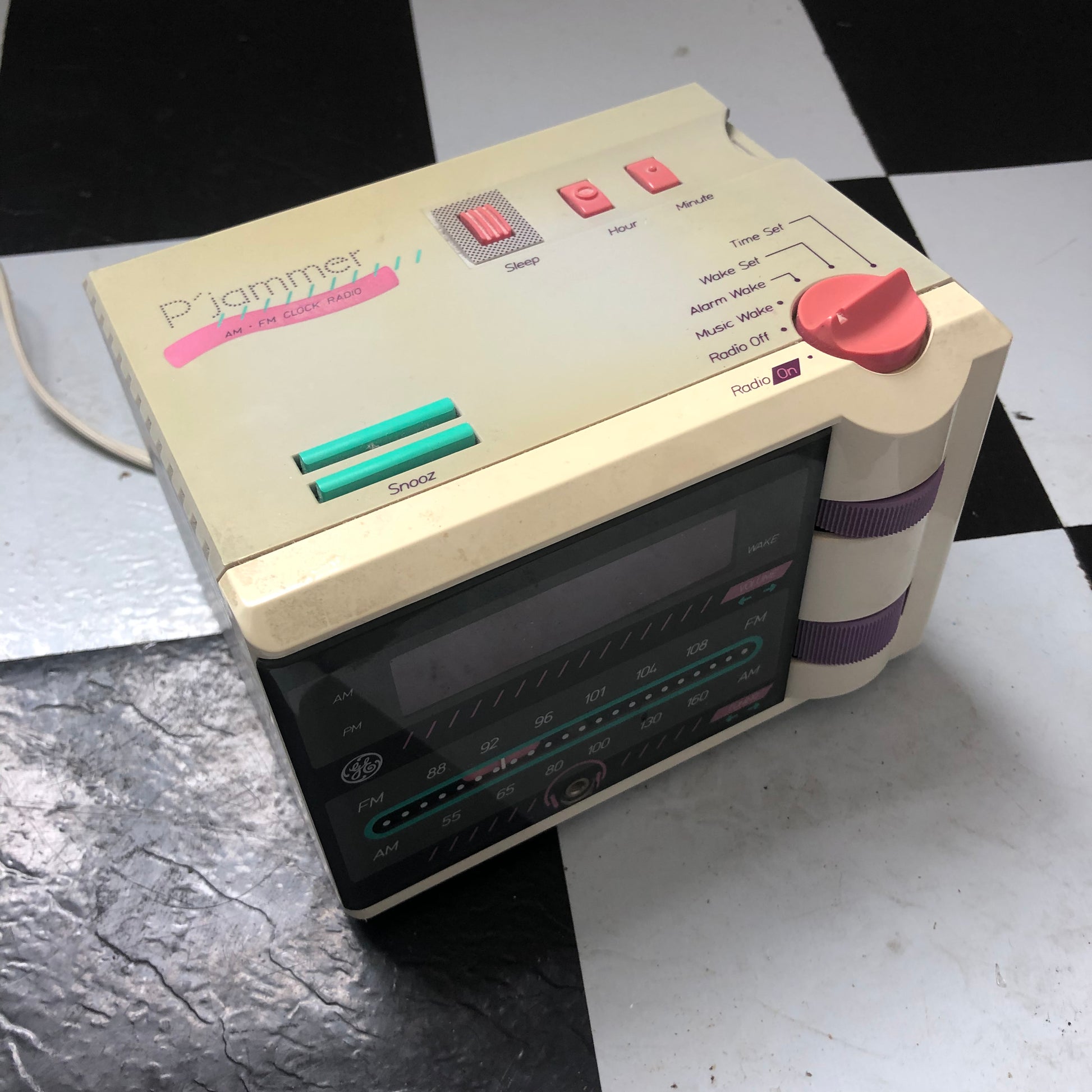 Super cool totally 90s pink and teal AM FM clock radio with alarm clock